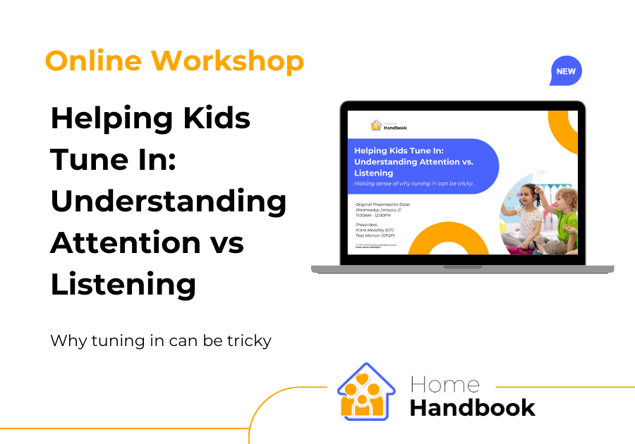 On-demand access to the live online workshop created for families to learn about the skills required for attention and listening, created by our children's occupational therapist, Ashley Hannan.